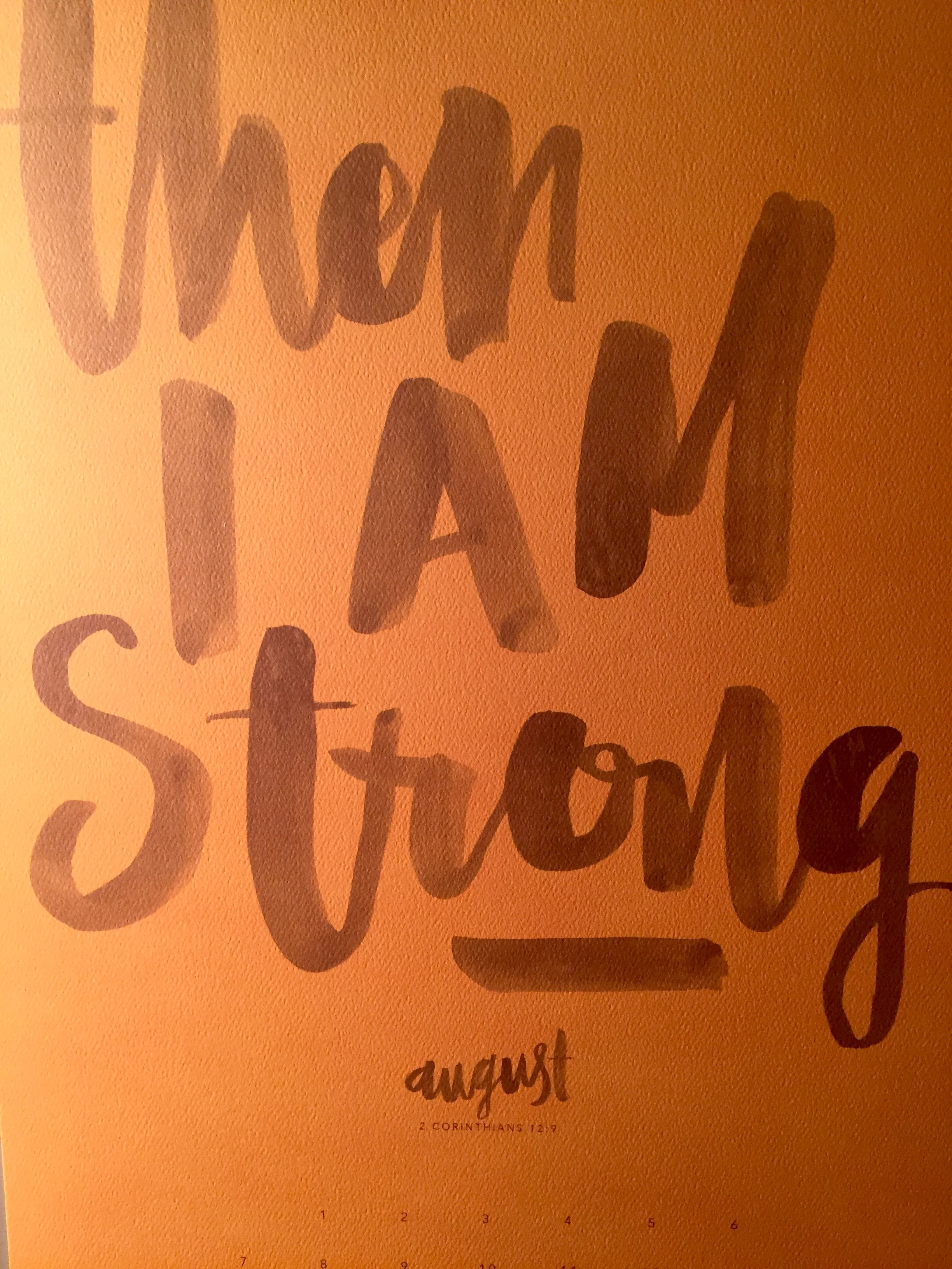 But he said to me, "My grace is sufficient for you, for my power is made perfect in weakness." Therefore I will boast all the more gladly about my weaknesses, so that Christ's power may rest on me. That is why, for Christ's sake, I delight in weaknesses, in insults, in hardships, in persecutions, in difficulties. For when I am weak, then I am strong. 2 Cor. 9-10